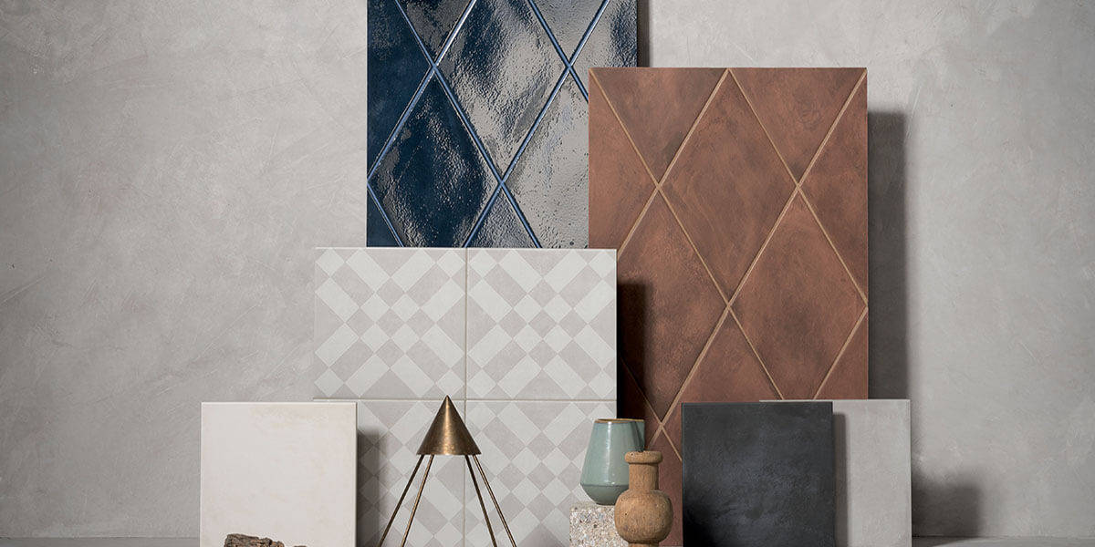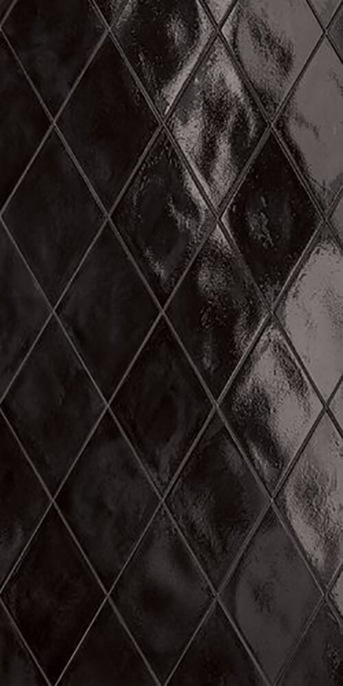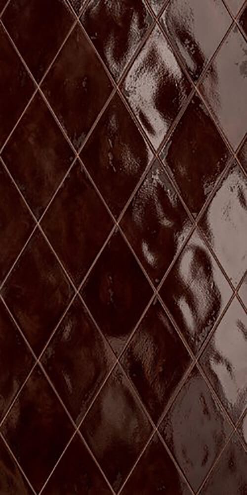 Ossidi – Porcelain diamond shapes with a glossy glaze that is rich to the touch. The glaze has a deliberately uneven application which gives these tiles a sense of history. Numerous layout options combined with five colors give a vast number of ways to design unique wall installations.